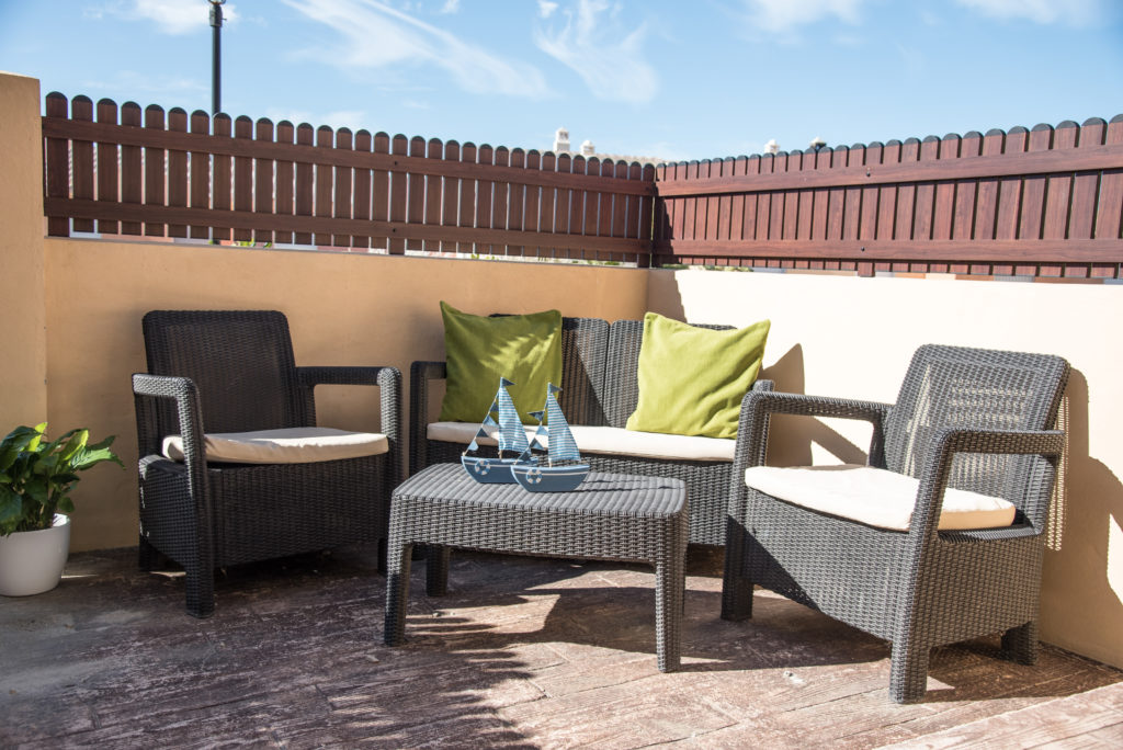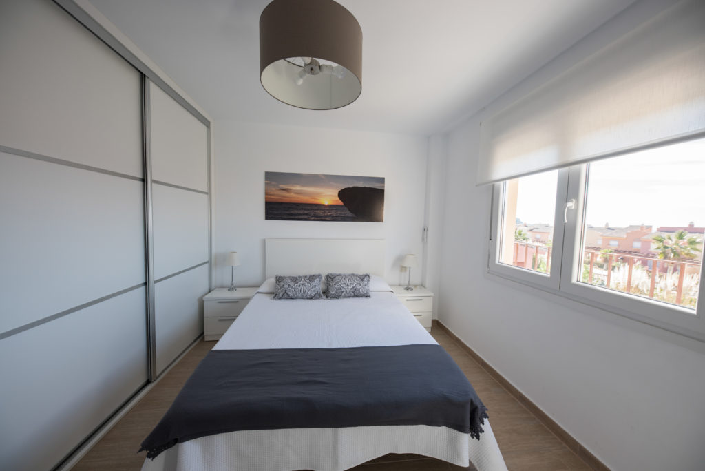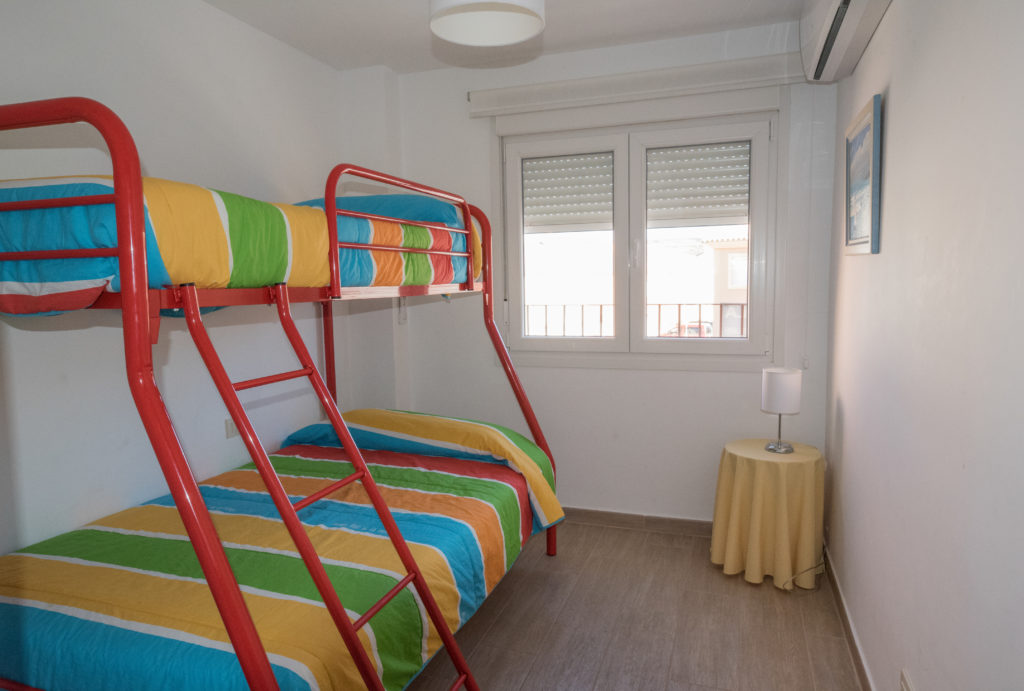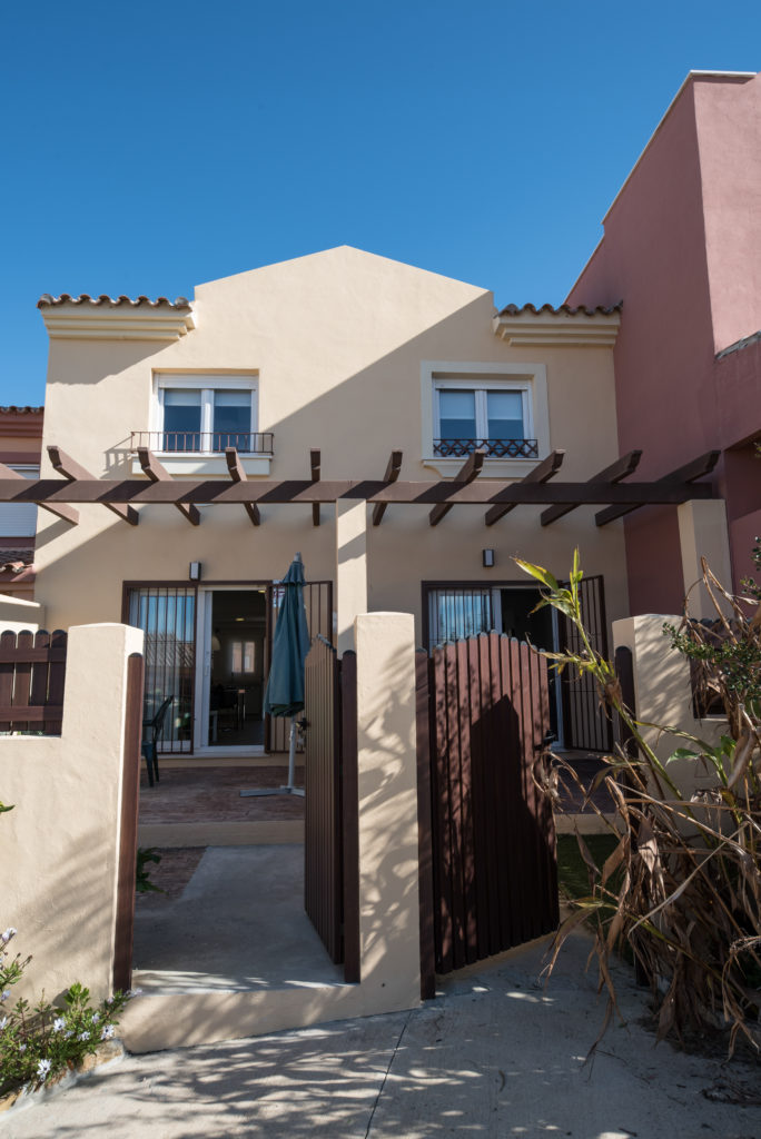 Vivienda adosada en la urbanización Arenales Golf, con capacidad para cuatro personas,  a escaso 7 minutos de la playa, en la planta superior cuenta con 2 dormitorios y baño,  en la inferior salón-comedor, aseo, cocina, porche y jardín, tiene aire acondicionado, wifi, garaje delante de la vivienda, tiene piscina de adulto e infantil. Al ser un conjunto residencial pequeño, es más familiar  y cómoda, así como, al encontrase apartada de las zonas de ocio y de la afluencia de veraneantes la hace más tranquila.