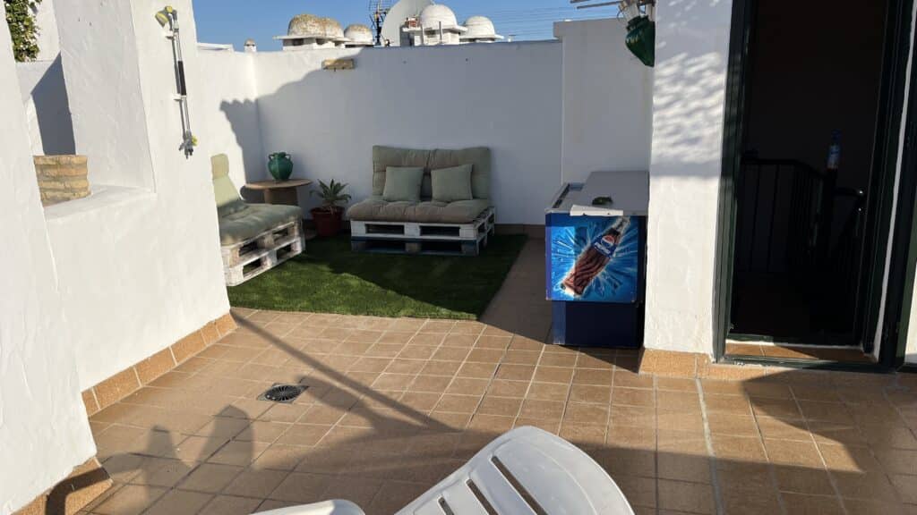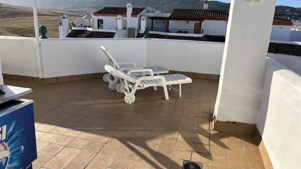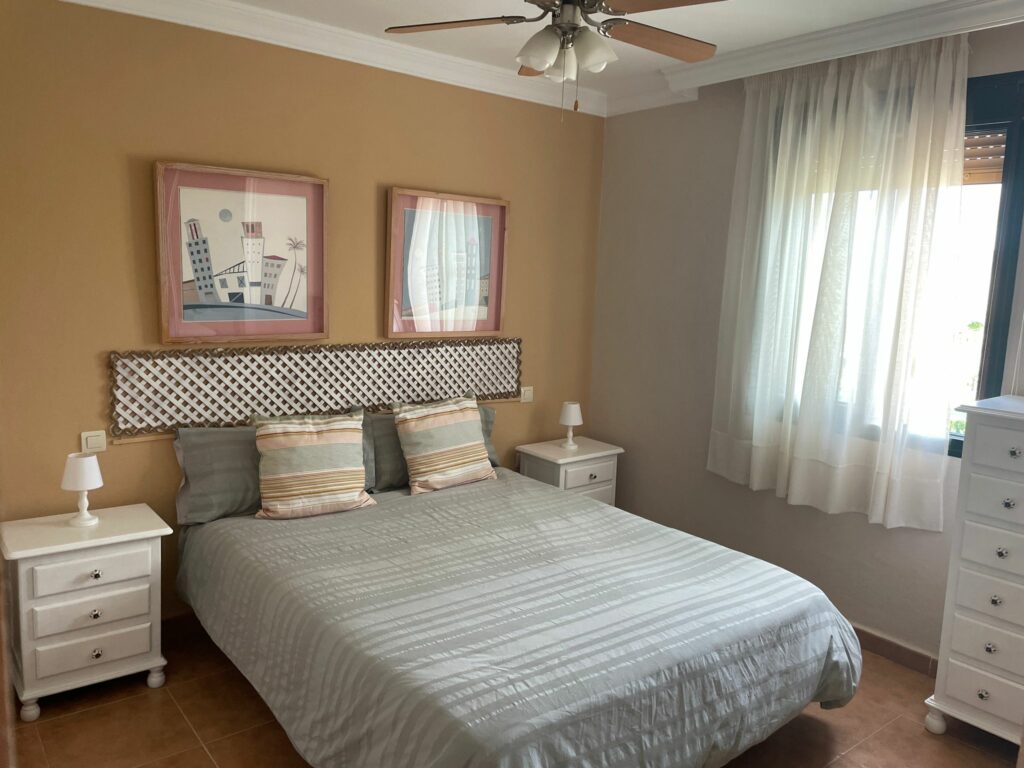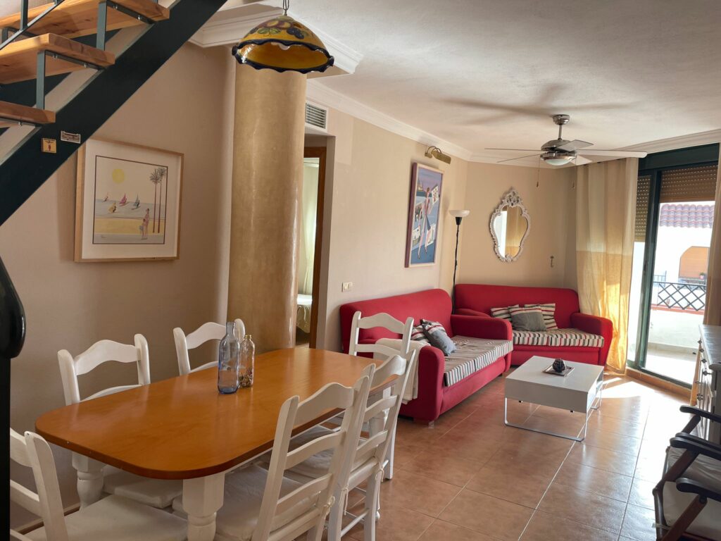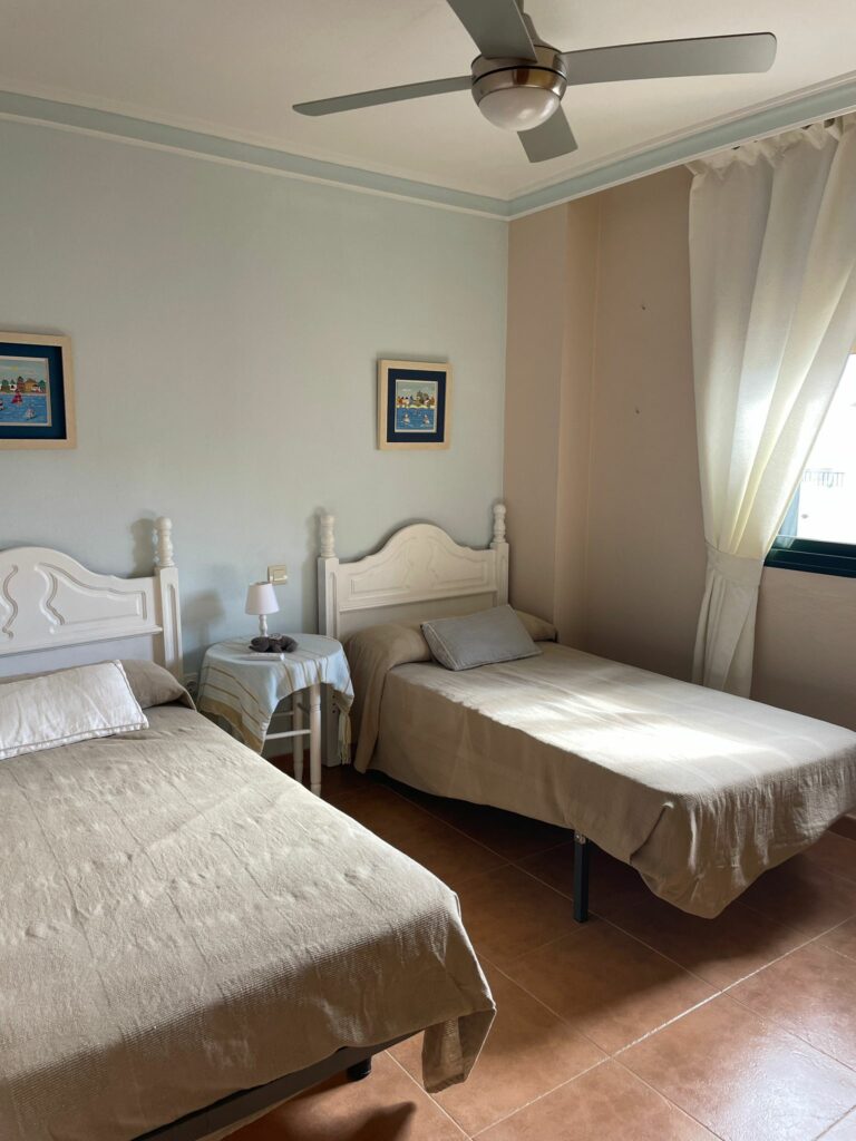 Apartamento-ático, cuarta planta en la urbanización Atlanterra Costa, a 4 minutos de la playa, la cual cuenta con 2 piscinas de adulto e infantil, 2 pistas de pádel, parque infantil y amplias zonas verdes. El apartamento con orientación levante, tiene 3 dormitorios, uno de ellos en la parte superior con ventilador de techo y aire acondicionado, baño. Abajo 2 dormitorios con ventiladores de techo, baño, salón con ventilador, aire acondicionado, comedor, cocina y terraza, wifi, garaje en sótano con ascensor hasta la vivienda. Capacidad 6 personas.