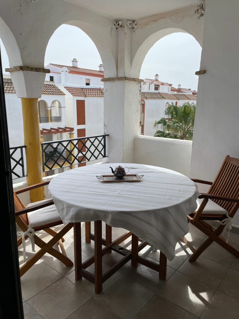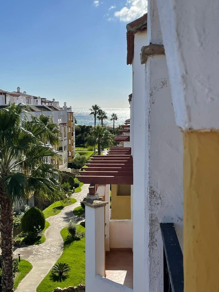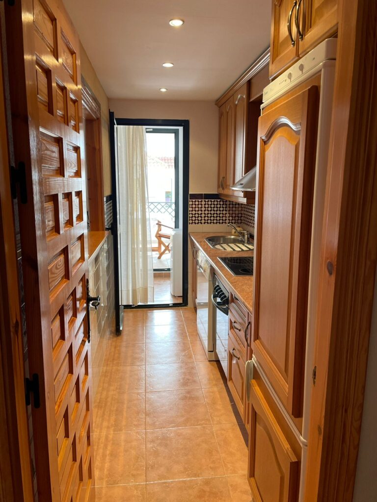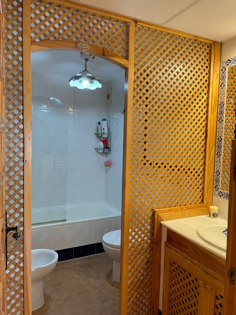 Apartamento-ático, cuarta planta en la urbanización Atlanterra Costa, a 4 minutos de la playa, la cual cuenta con 2 piscinas de adulto e infantil, 2 pistas de pádel, parque infantil y amplias zonas verdes. El apartamento con orientación levante, tiene 3 dormitorios, uno de ellos en la parte superior con ventilador de techo y aire acondicionado, baño. Abajo 2 dormitorios con ventiladores de techo, baño, salón con ventilador, aire acondicionado, comedor, cocina y terraza, wifi, garaje en sótano con ascensor hasta la vivienda. Capacidad 6 personas.