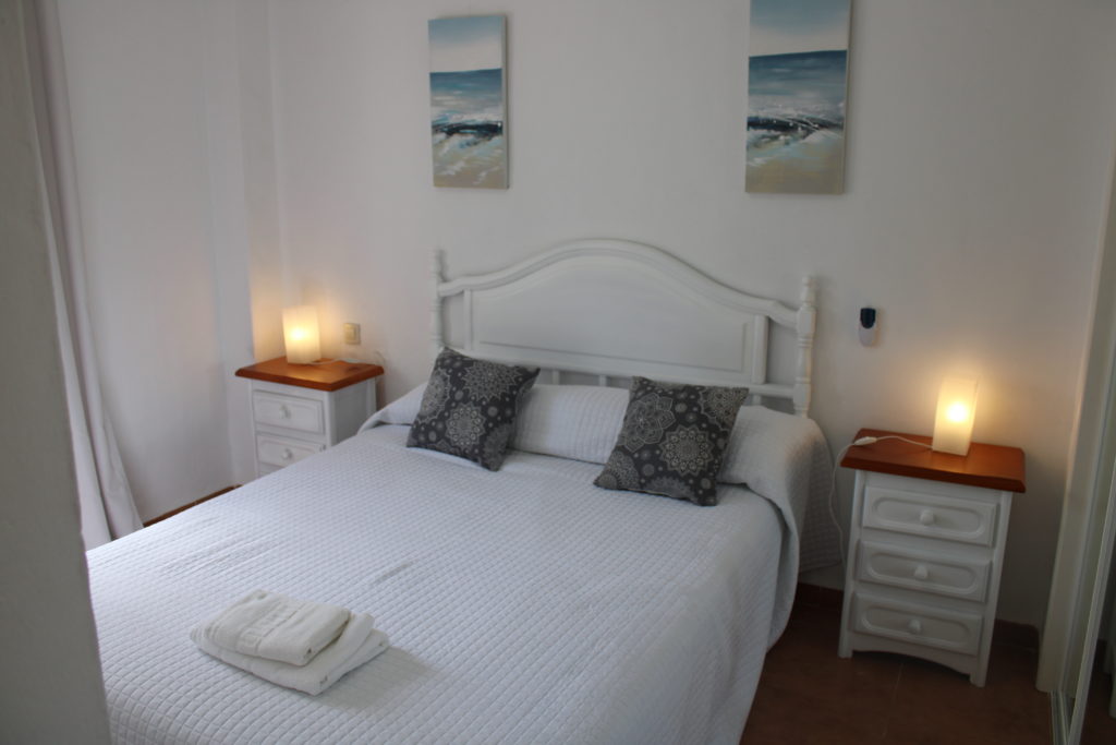 .Apartamento en primera planta, Frontal, en la urbanización Atlanterra Playa, la cual cuenta con 2 piscinas, una de adulto y otra infantil, jardines y zona infantil. El apartamento tiene 3 dormitorios y 2 baños cuenta con ventiladores de techo en las habitaciones y salón, garaje en planta sótano con ascensor hasta la vivienda, wifi, capacidad 6 personas.