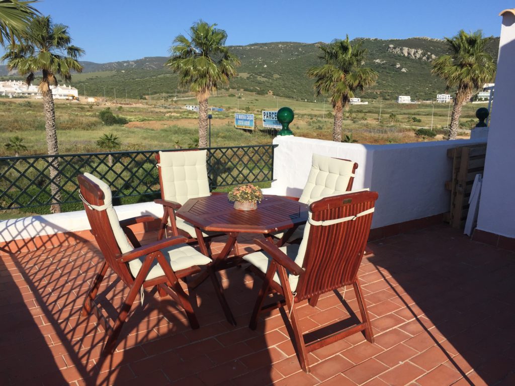 Apartamento-ático, segunda planta en la urbanización Atlanterra Playa, a 5 minutos de la playa, la cual cuenta con 2 piscinas de adulto e infantil, 4 pistas de pádel, parque infantil y amplias zonas verdes. El apartamento con orientación poniente, tiene 3 dormitorios, uno de ellos en la parte superior con ventilador de techo, aire acondicionado y baño. Planta baja, 2 dormitorios con ventiladores de techo, baño, salón con ventilador y aire acondicionado, comedor, cocina y terraza, garaje en sótano con ascensor hasta la vivienda. Wifi. Capacidad 6 personas. NO SE ADMITEN MASCOTAS.