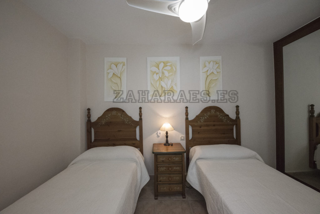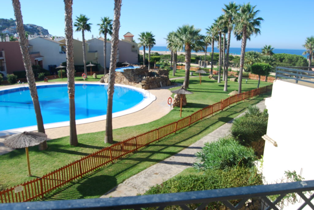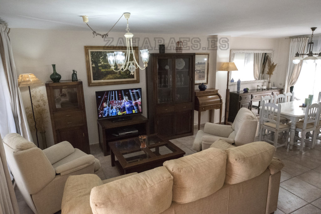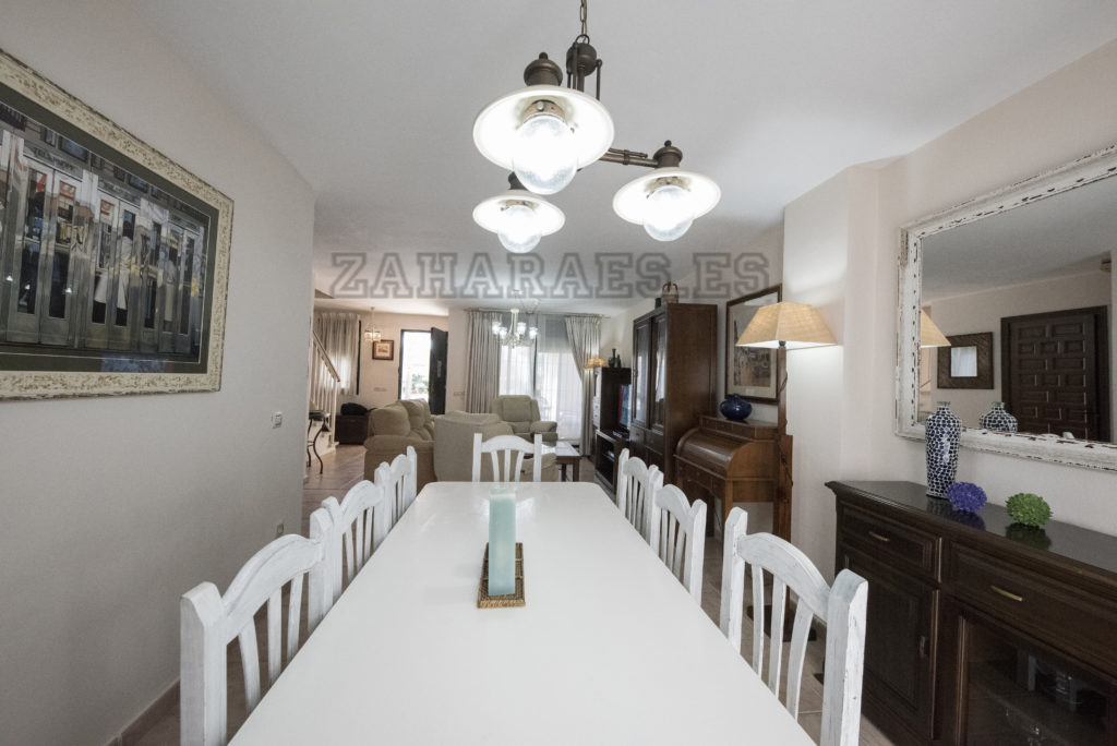 Casa Adosada de 3 plantas a 50 metros de la playa, en la urbanización Jardines de Zahara, la cual cuenta con 2 piscinas de adulto e infantil, 2 pistas de pádel y zonas ajardinadas. La vivienda con orientación a levante, cuenta en la planta superior con 3 dormitorios con ventiladores de techo y aires acondicionado y 2 baños, uno de ellos en el dormitorio principal, desde este dormitorio se accede a la terraza desde la cual se ve la playa y la piscina. En la planta baja tiene el acceso a la casa desde el patio exterior y porche, tiene salón-comedor con aire acondicionado, cocina y patio interior y aseo, en la planta sótano tiene 2 camas individuales con ventilación exterior , desde aquí se accede al garaje que cuenta con 2 plazas de aparcamiento, no admite mascota. Capacidad 8 personas .