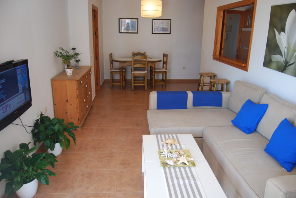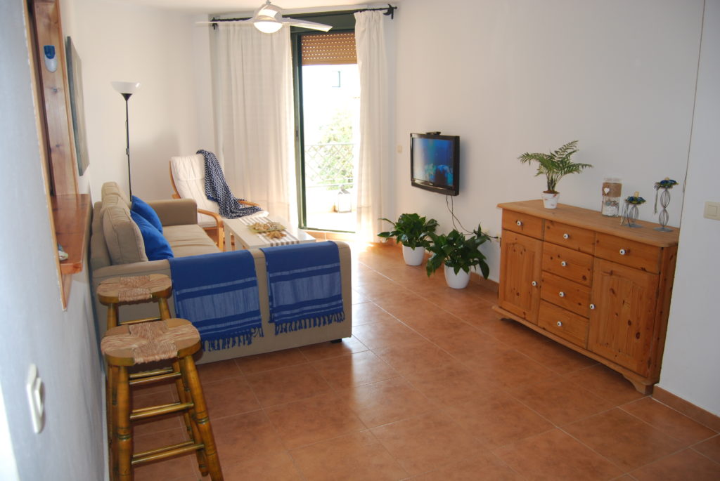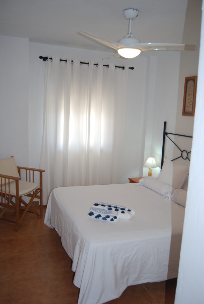 Apartamento en tercera planta en la urbanización Atlanterra Playa, a 3 minutos de la playa, la cual cuenta con 2 piscinas de adulto e infantil, 4 pistas de pádel, parque infantil y amplias zonas verdes. El apartamento con orientación a levante, tiene 1 dormitorio con ventilador de techo, 1 baño, cocina, salón-comedor con ventilador de techo, terraza con vistas a los jardines y al mar, capacidad 2 personas, garaje en sótano con ascensor hasta la vivienda.