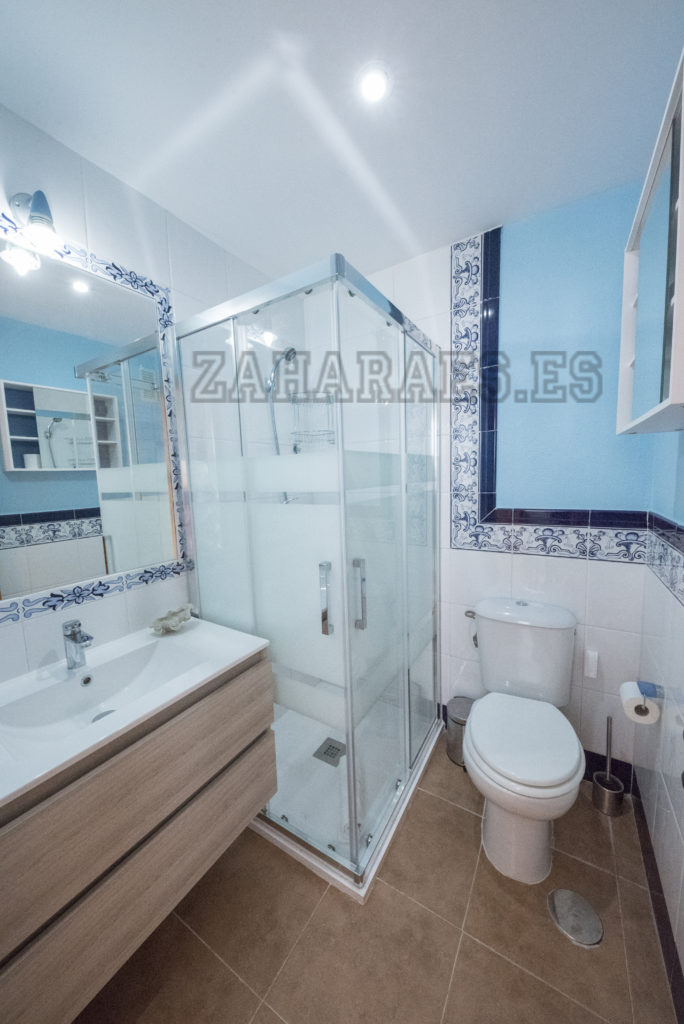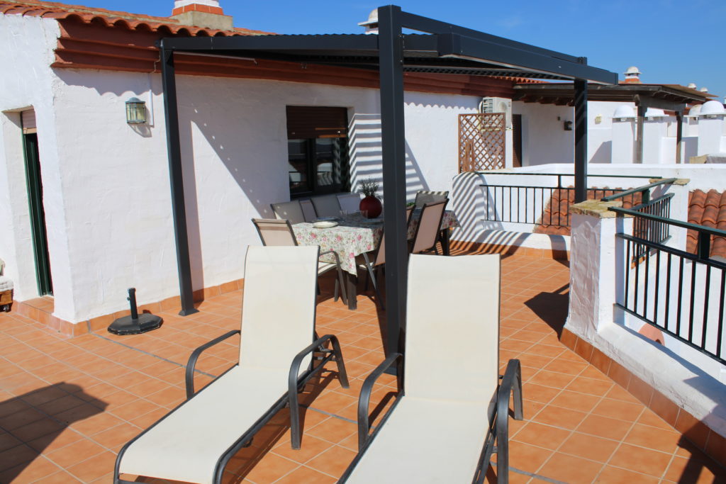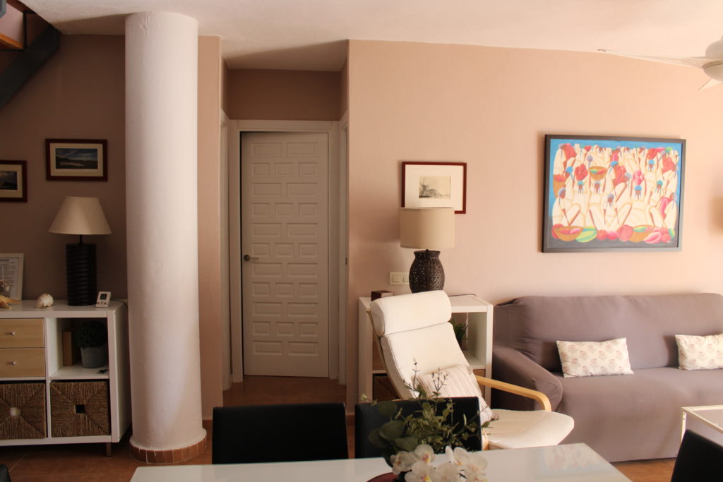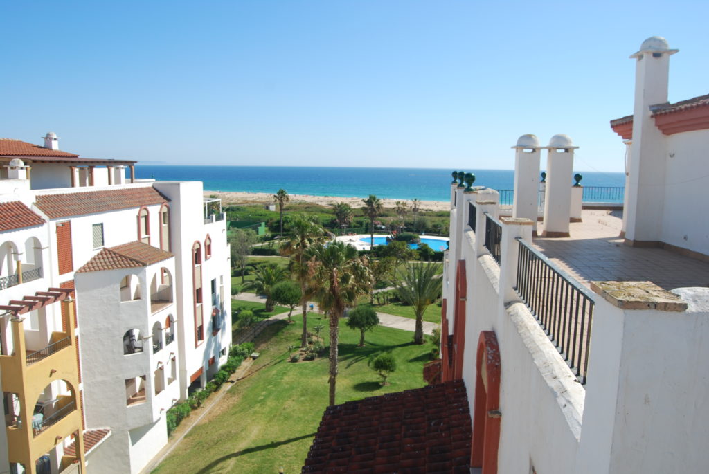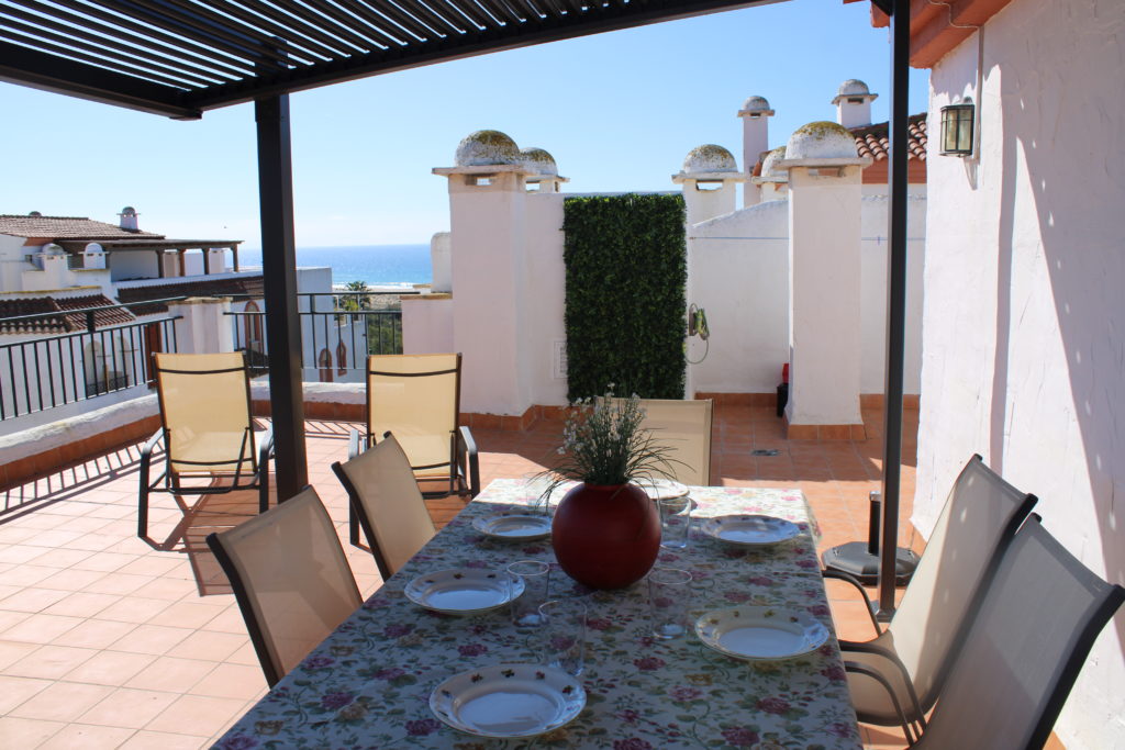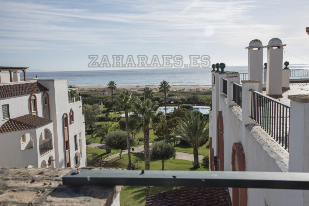 Apartamento-ático, cuarta planta en la urbanización Atlanterra Costa, a 4 minutos de la playa, la cual cuenta con 2 piscinas de adulto e infantil, 2 pistas de pádel, parque infantil y amplias zonas verdes. El apartamento con orientación levante, tiene 3 dormitorios, uno de ellos en la parte superior con ventilador de techo y aire acondicionado, baño. Abajo 2 dormitorios con ventiladores de techo, baño, salón con ventilador, aire acondicionado, comedor, cocina y terraza, wifi, garaje en sótano con ascensor hasta la vivienda. Capacidad 6 personas.